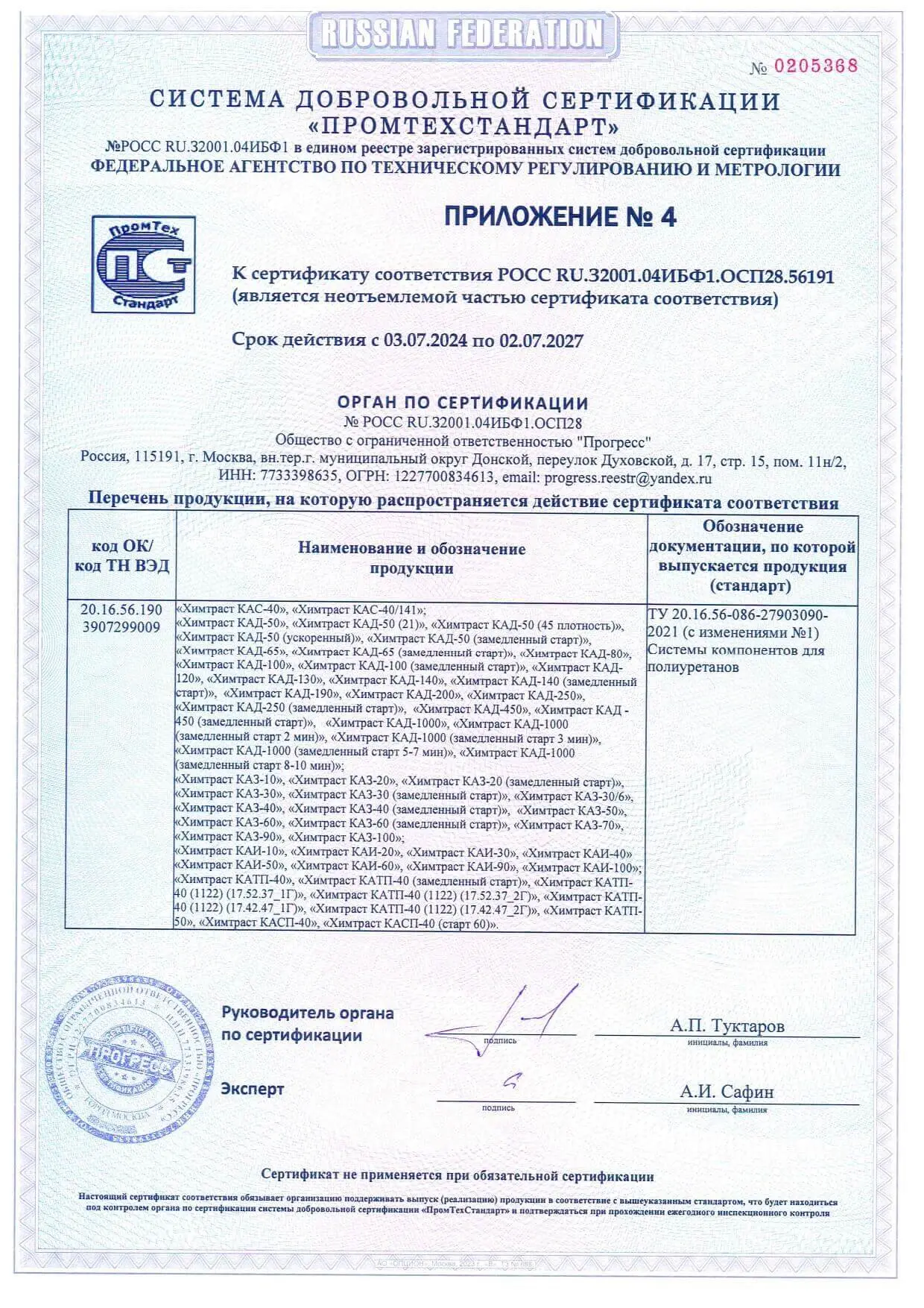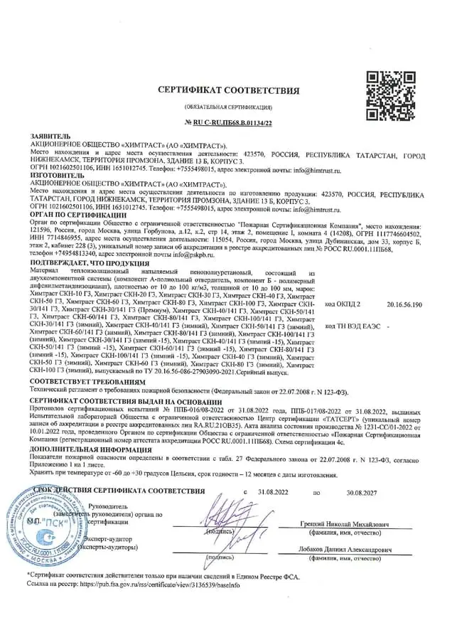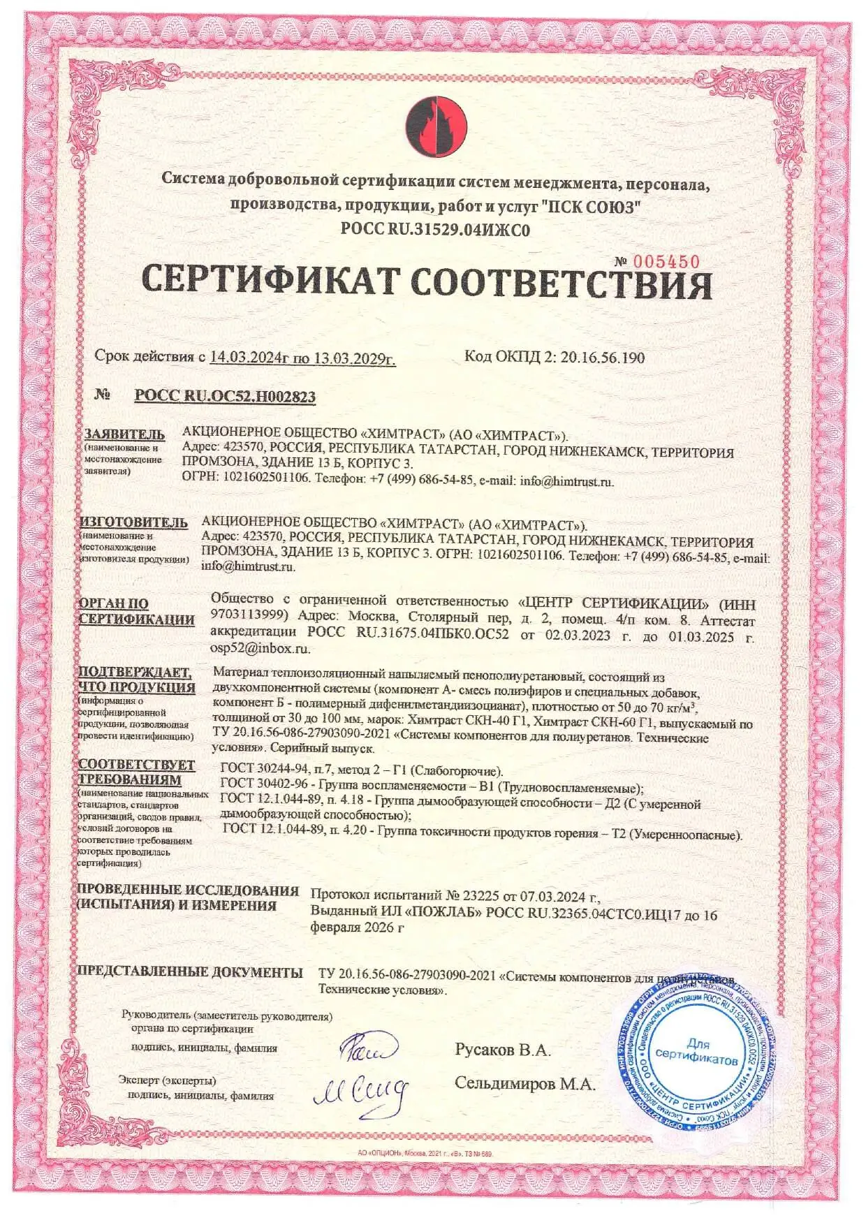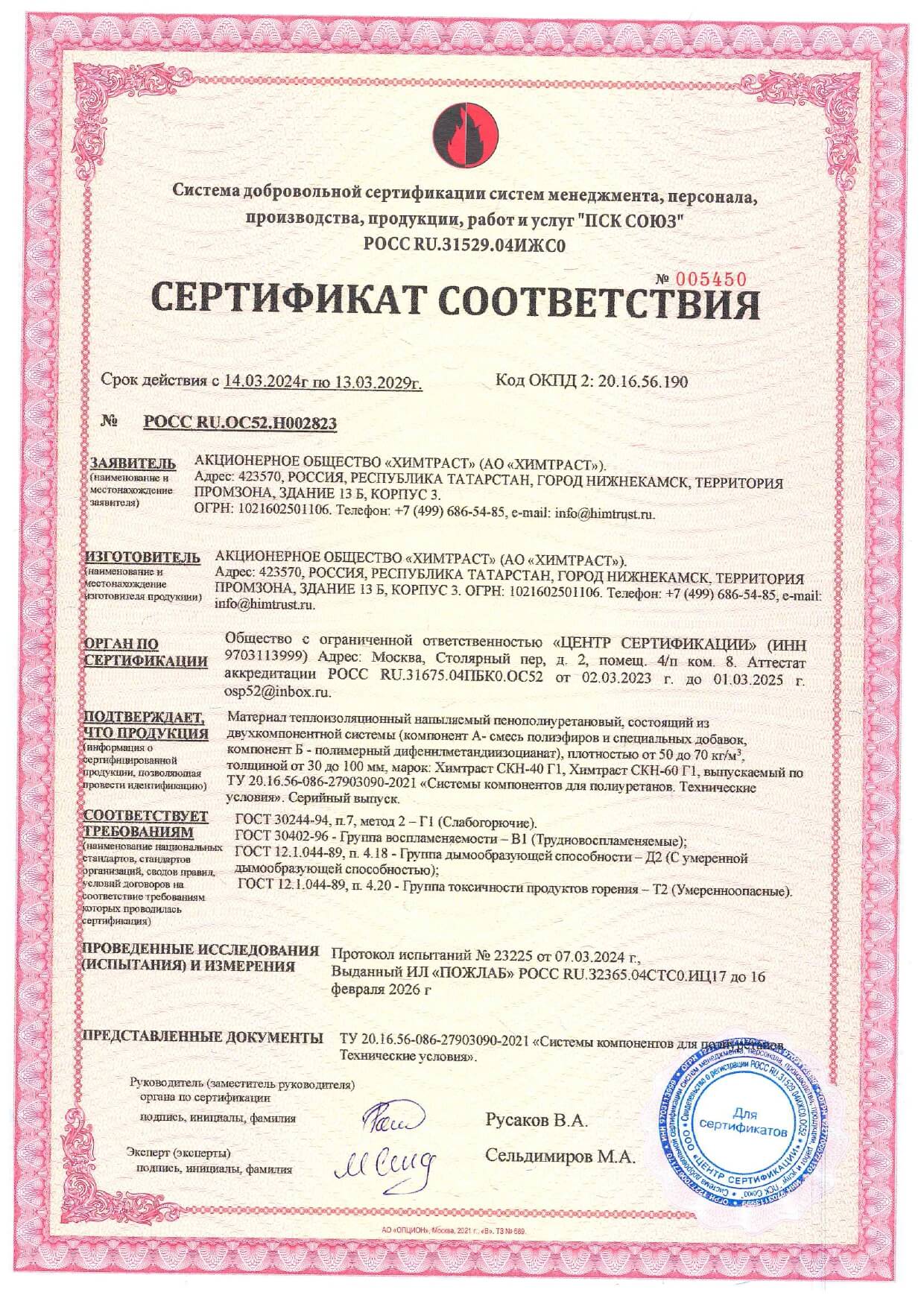 Сертификат соответствия на "Химтраст Краску Пенополиуретан"