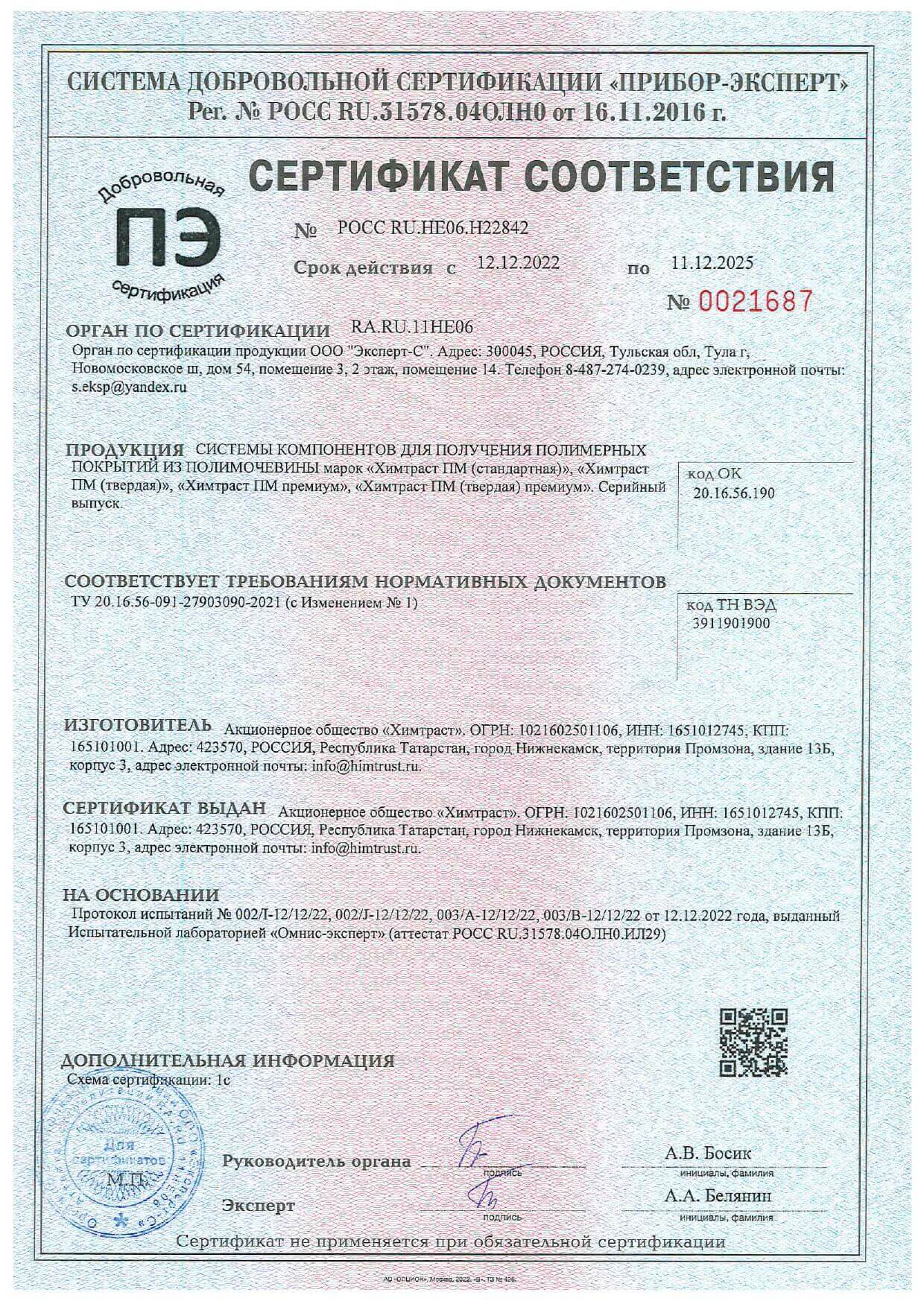 Сертификат соответствия на полиуретановый герметик